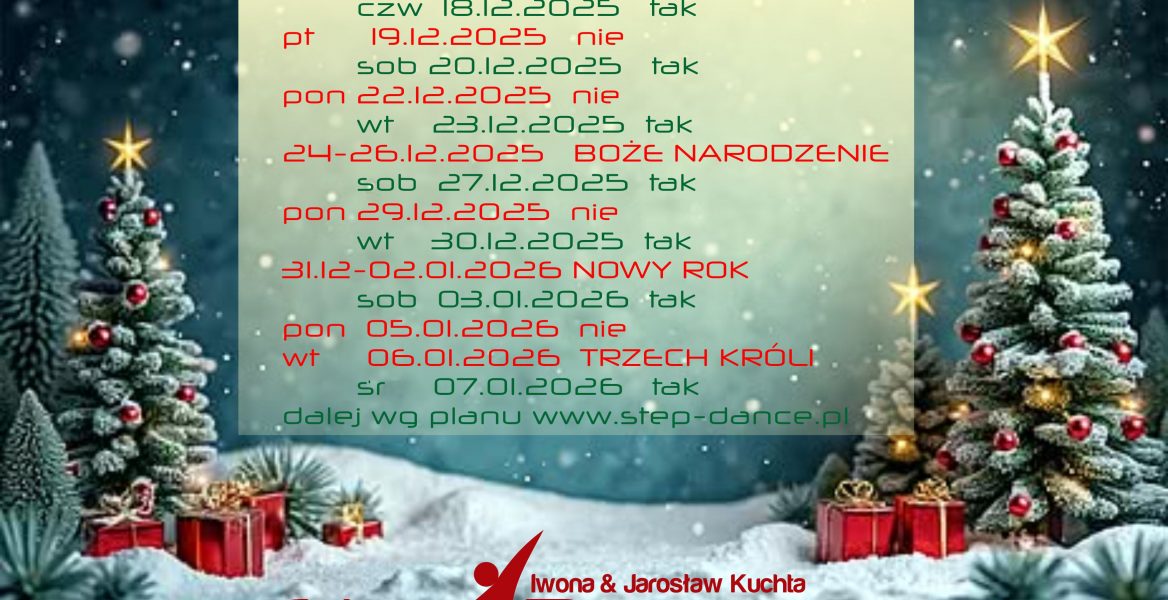 Szczegółowy plan zajęć w poszczególne dni od 18.12.2025 do 07.01.2026 i dalej